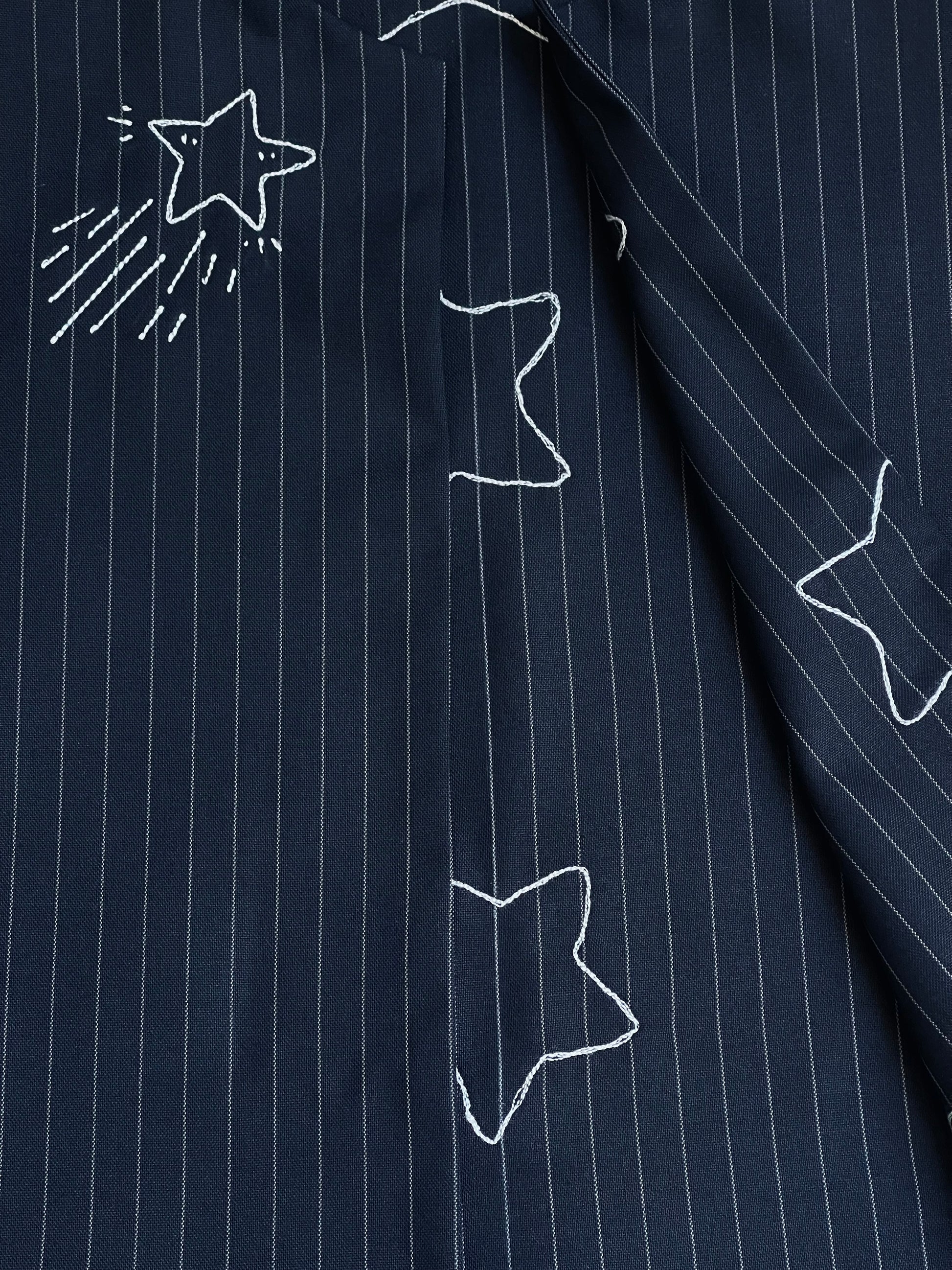 A reversible sleeveless piece for little boys, featuring delicate free-motion embroidered star details.